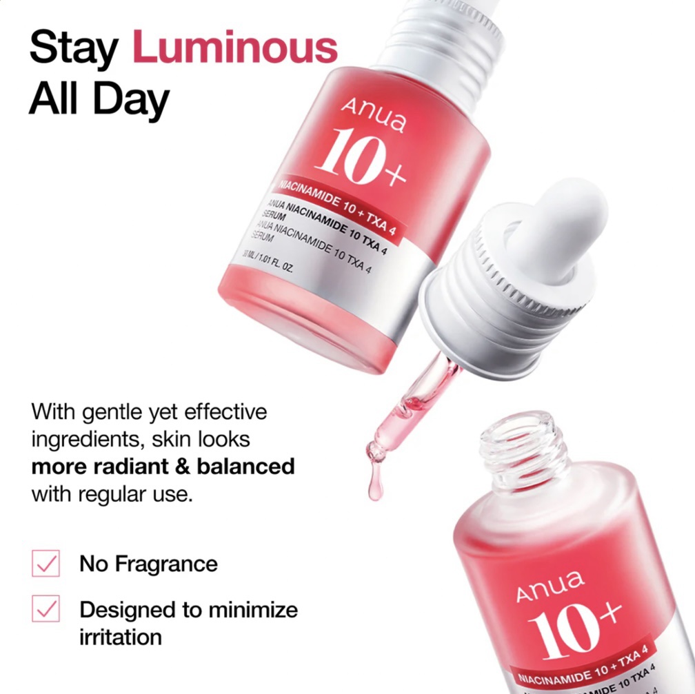 Le sérum Anua à la niacinamide est un soin correcteur qui cible les défauts du teint. Il agit principalement sur les taches pigmentaires, les rougeurs et les irrégularités de la peau.