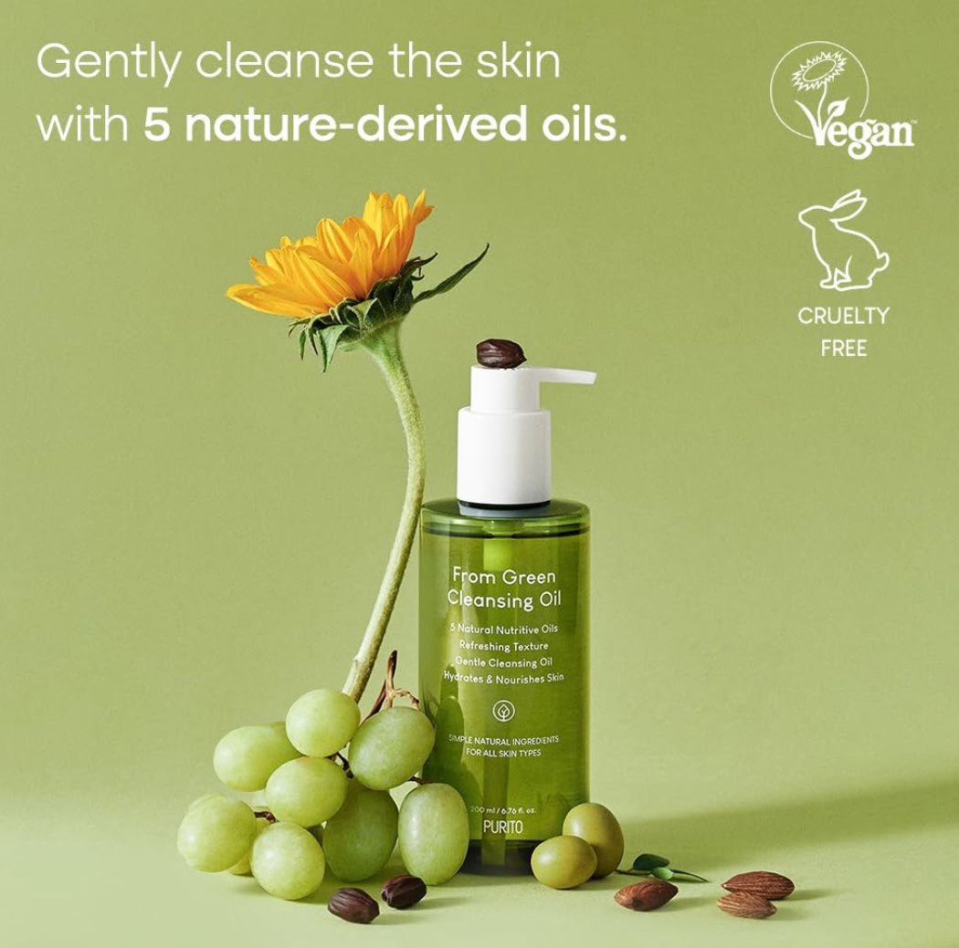 Le From Green Cleansing Oil de PURITO offre un nettoyage profond et naturel grâce à sa formule à base d’huiles végétales pures, incluant l’huile d’olive et l’huile de tournesol.